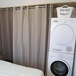 El Apartamento Le Goeland ofrece a los huéspedes un vestidor y tiene vistas al jardín. La propiedad cuenta con suelos de azulejos. Este apartamento incluye 2 dormitorios. Este establecimiento está equipado con un cuarto de baño con secadora, albornoces y toallas. También dispone de inodoro separado y ducha.